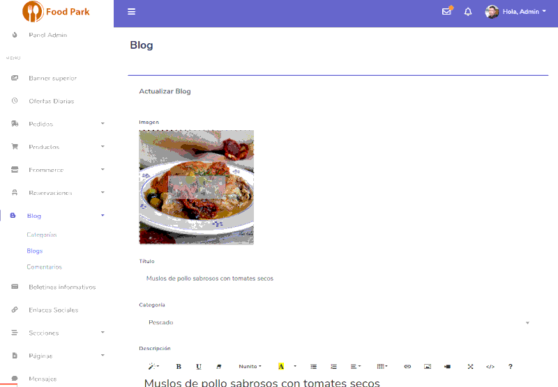 Gestor de Restaurantes - Secci贸n Blog - TJWeb