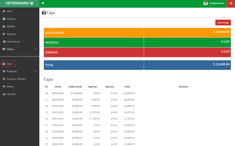 Caja Secci贸n Menu - Caja En este modulo podemos Abrir y Cerrar Caja. Podemos ver los ingresos y egresos al corte de caja. Documentaci贸n | Gestor de Veterinarias | Caja | TJWeb